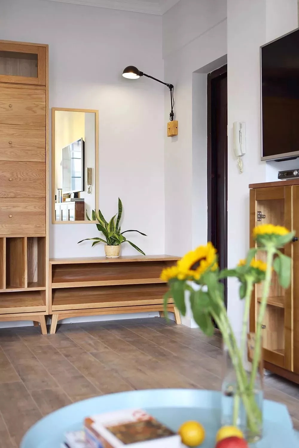 正對大門的柜子,可以收納一些零碎的東西,如果再放上綠植、掛畫搭配就非常有格調。