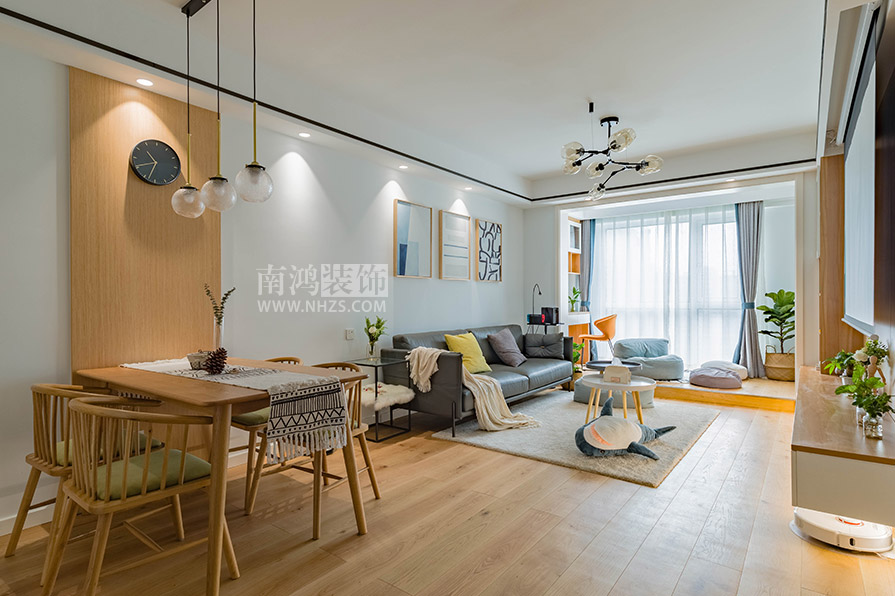 北歐風的要義之一就是通透明亮的室內(nèi)條件,開放式是常見的做法,并且喜歡利用各類軟裝、家具來劃分區(qū)域,而不是硬隔斷。
