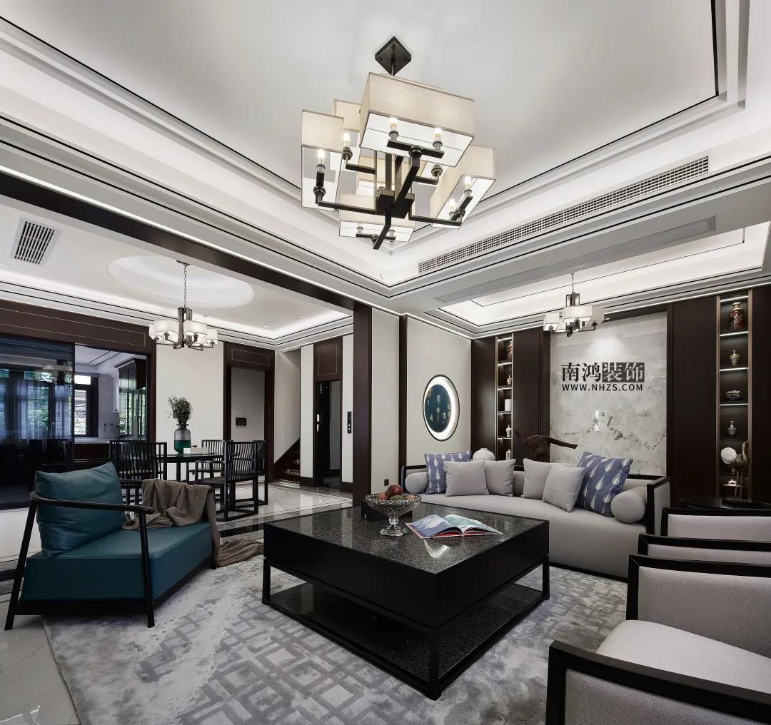 本案為國悅府410㎡新中式設計,便將這種精神內核延伸到“至精歸于至簡”的美學意境,并融合多元的設計元素,來展現其返樸歸真、順應自然的特點。