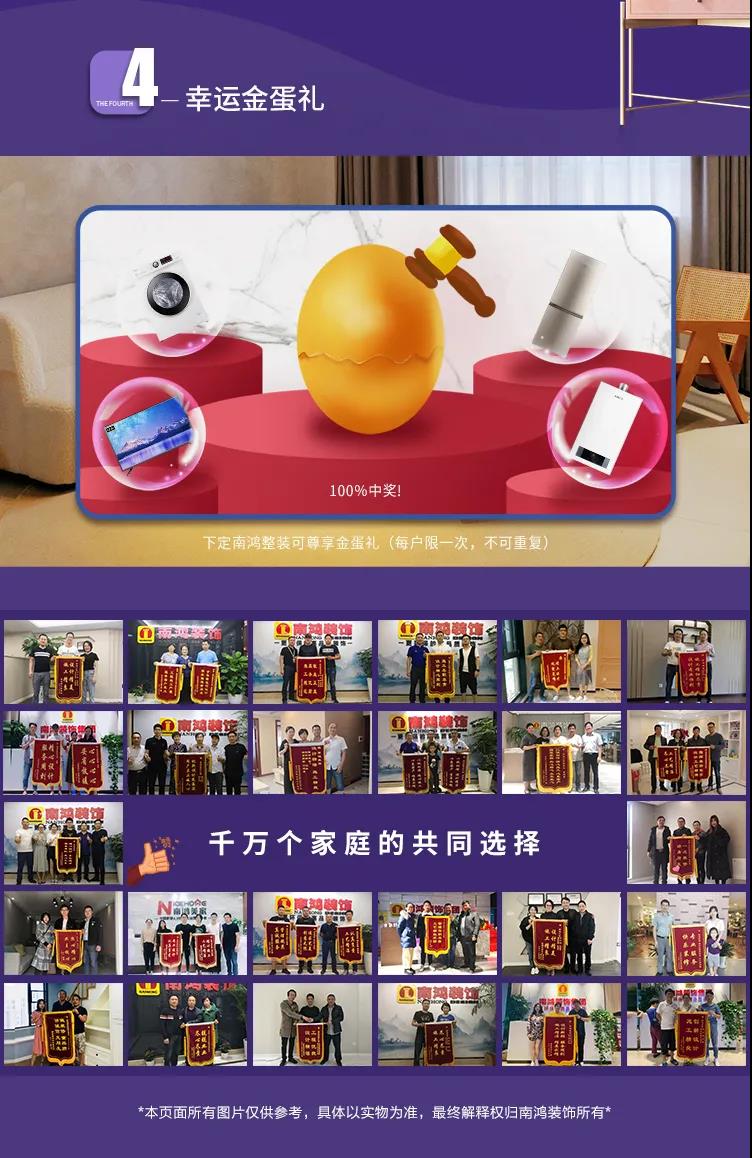 為了感謝業主朋友們長期以來的支持,南鴻裝飾特推出肆月整裝節活動,定硬裝,送軟裝,最高可得價值5萬+的軟裝12件套,更多優惠,歡迎來店咨詢哦~