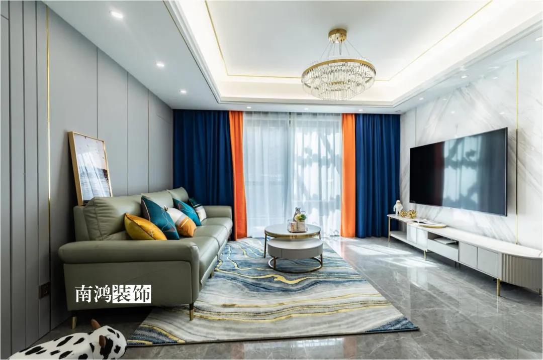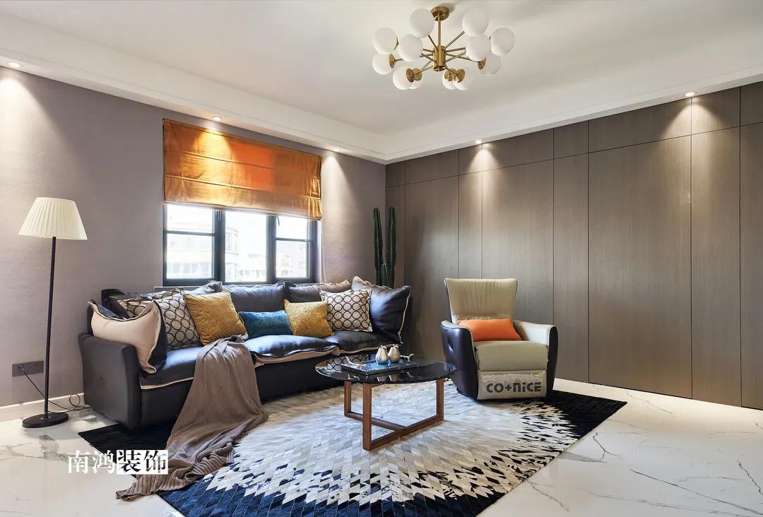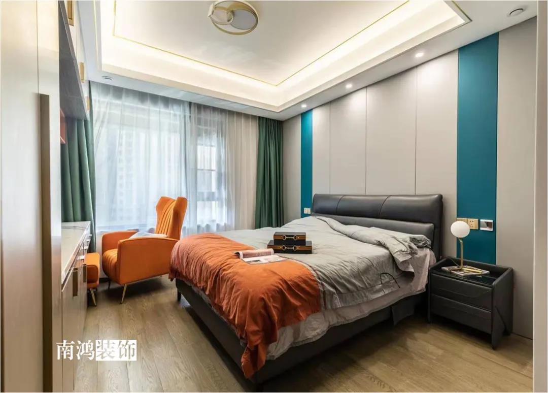 本案為126方現代風格的作品,主題定位在高級、簡約、大氣。案例整體保持簡約的格調,以高級灰為主色,軟裝上加入活潑的跳躍色,呈現利落干凈的家居氛圍。