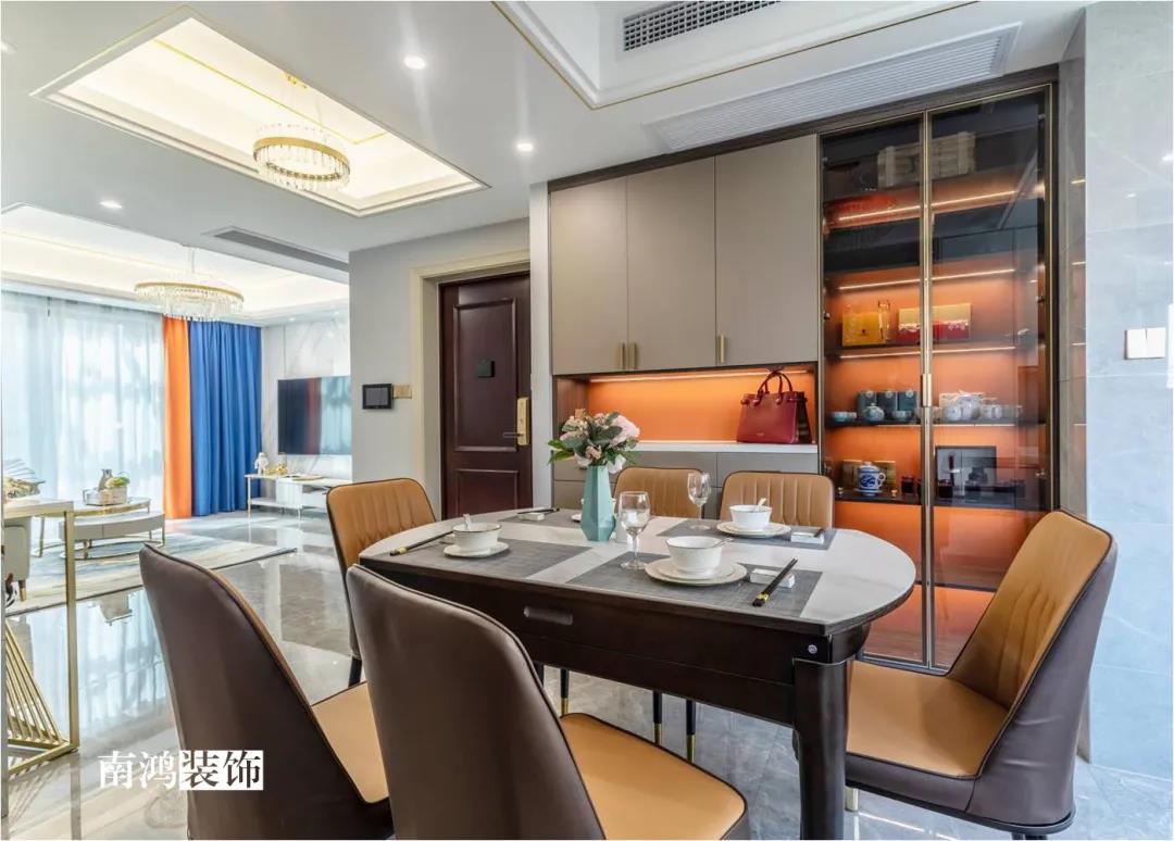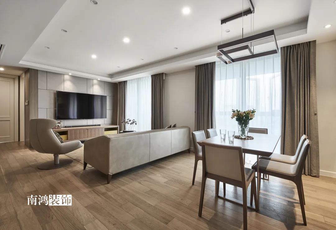 本案為151方現代輕奢風格的作品,簡約的空間和華麗端莊的軟裝、顏色搭配,注重品質感與設計感,自然凸顯一種低調的奢華氣質。